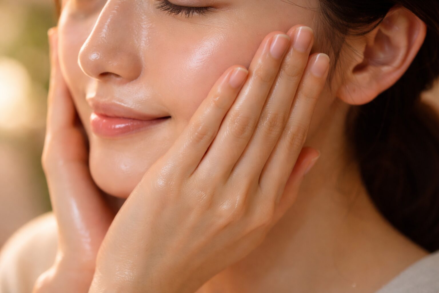 ベタつきの原因の多くは、浸透しきれずに肌表面に残った成分です。手のひら全体を使って顔を包み込み、体温で温めながらじっくりと押し込む「ハンドプレス」を行いましょう。