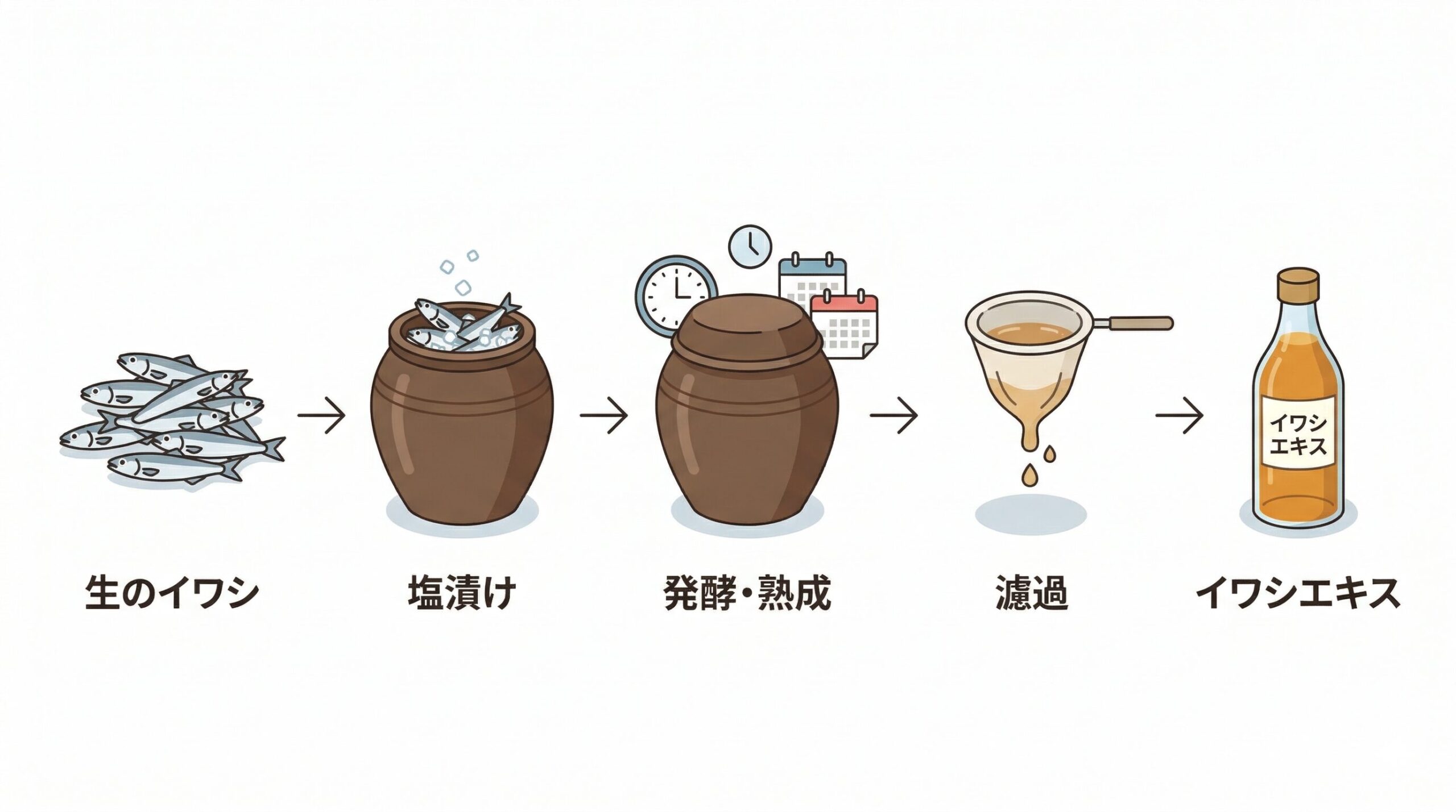 厳選された新鮮なカタクチイワシと塩のみを使用し、じっくりと時間をかけて自然発酵・熟成させて作られているため、添加物の嫌な味が一切しません。