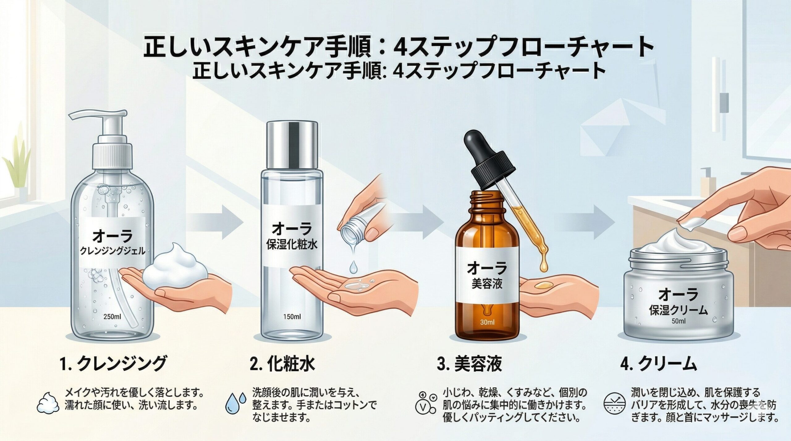 毛穴の黒ずみや開きを改善するためには、クレンジングから美容液、クリームまでのトータルケアを正しい手順で行うことが何よりも大切です。