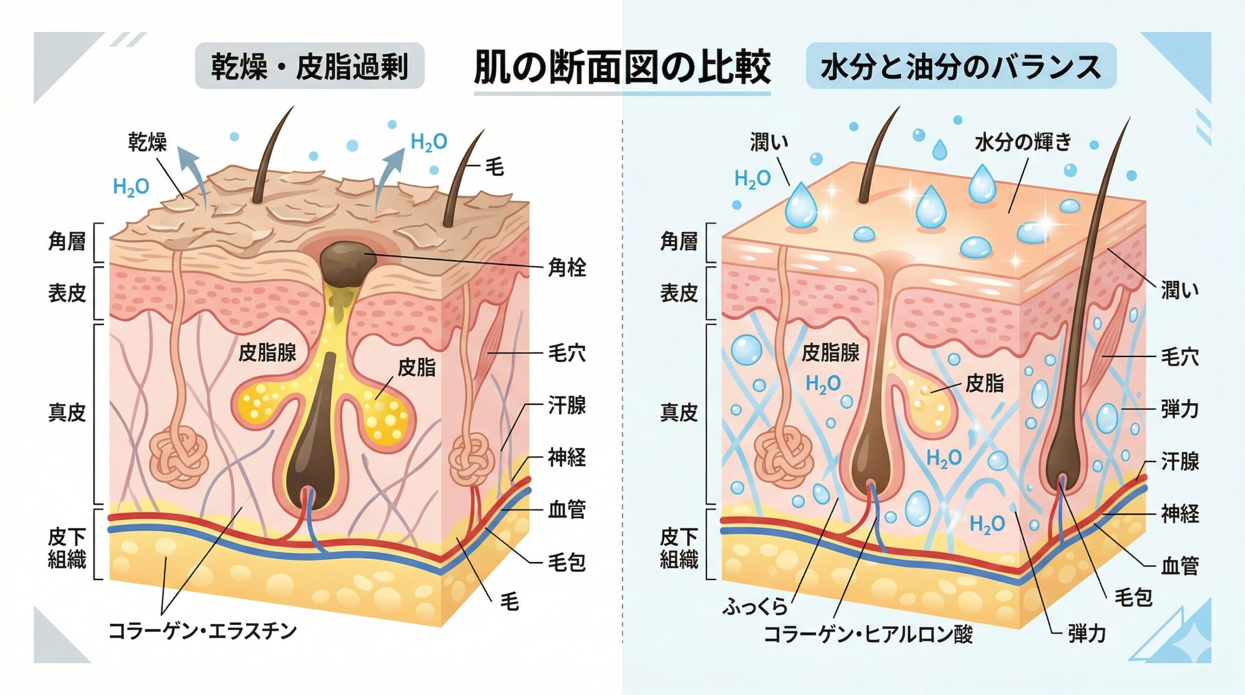 そのため、過剰な皮脂をしっかりと洗い流しながらも、肌に必要な潤いを奪わないマイルドな洗顔料を選ぶことが重要です。