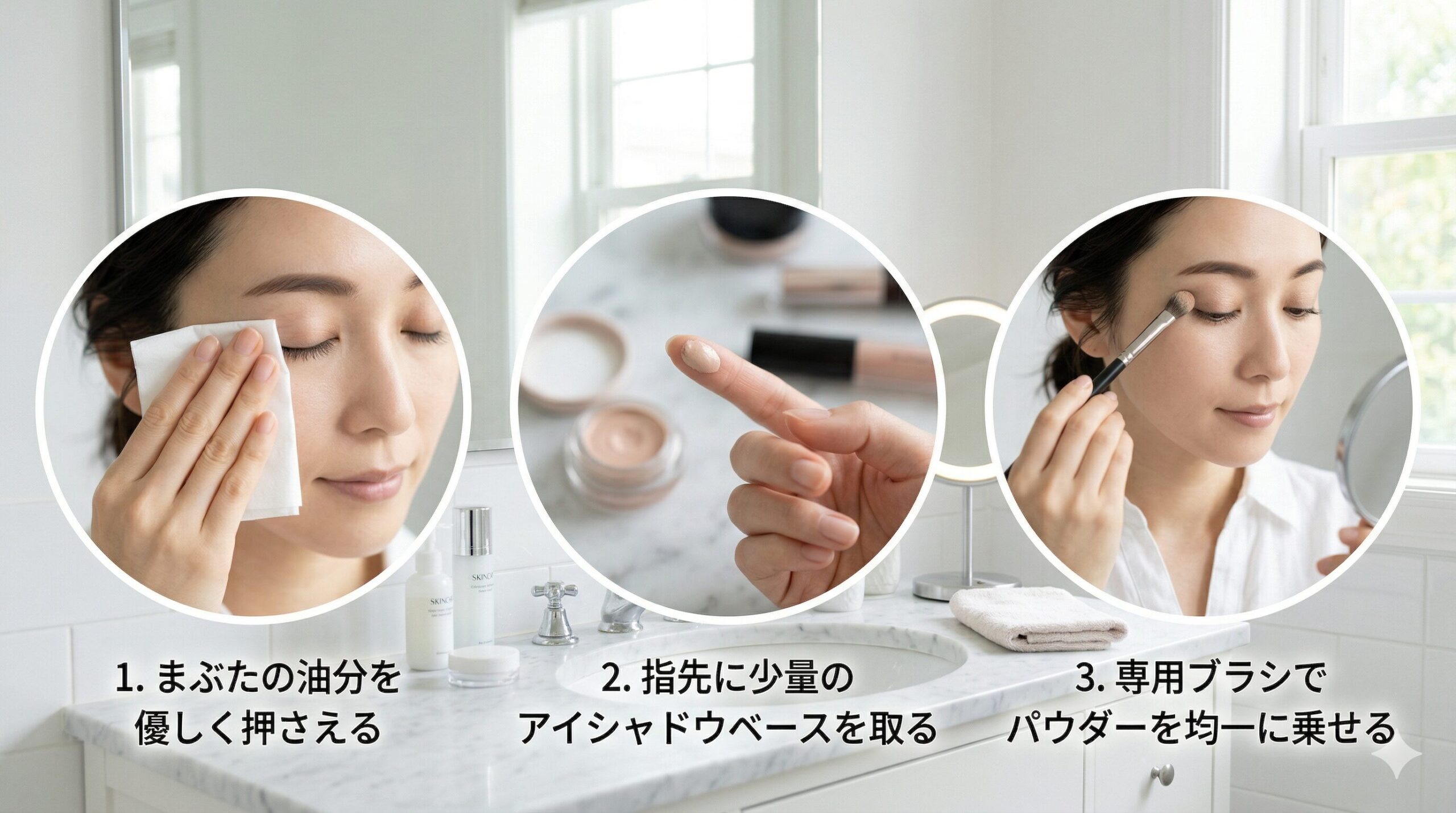 また、アイシャドウベース(プライマー)を使用することも非常に効果的です。