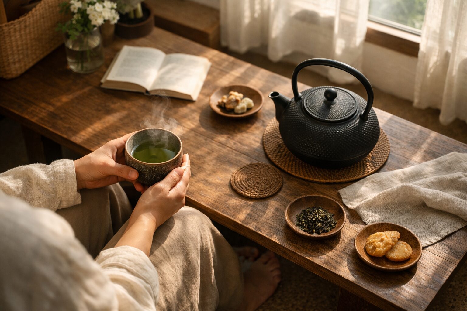 厚みのある鉄が熱をしっかりと蓄えてくれるため、お茶の温かさが長持ちし、ゆっくりと読書や会話を楽しむ時間に最適です。